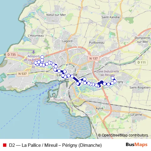 Bus D2 - La Pallice / Mireuil – Périgny (Dimanche): Full Schedule in La Rochelle