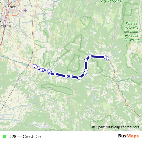 Click here to view the nearest D28 - Crest-Die bus stop.