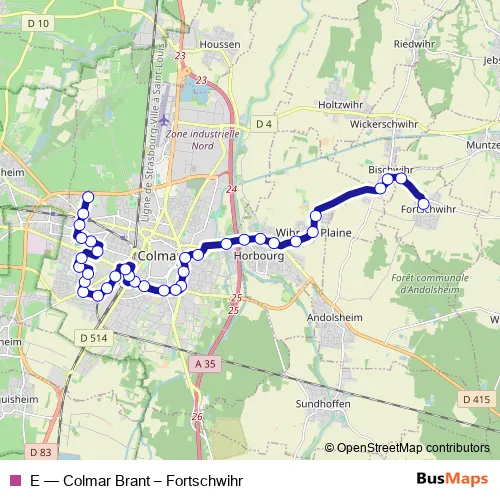 Bus E - Colmar Brant – Fortschwihr: Full Schedule in Colmar