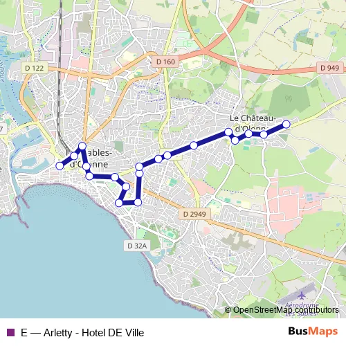 Bus E - Arletty - Hotel DE Ville: Full Schedule in Les Sables-d'Olonne