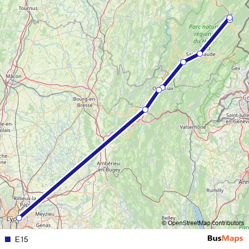 The first stop of the E15 bus route is Morez, Lycée and the last stop is Lyon-Part-Dieu Gare Routière. E15 is operational during everyday.
