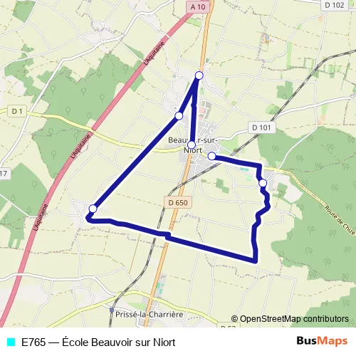 Click here to view the nearest E765 - École Beauvoir sur Niort bus stop.