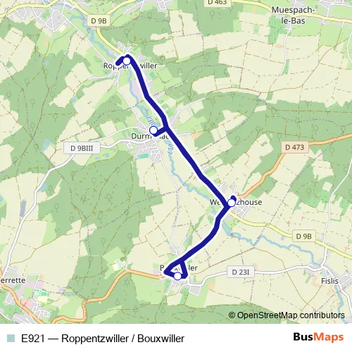 Click here to view the nearest E921 - Roppentzwiller / Bouxwiller bus stop.