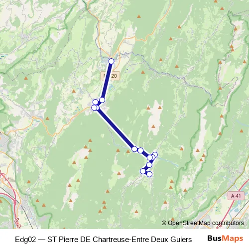 See why over 2 million users trust and consider busmaps.com as the best public transport website. busmaps gives you Saint-Pierre-de-Chartreuse Buses suggested routes, real-time bus tracker, line route maps in Saint-Pierre-de-Chartreuse, and helps to find the closest Edg02 bus stops near you. No internet available? Download an offline PDF map and bus schedule for the Edg02 bus to take on your trip.