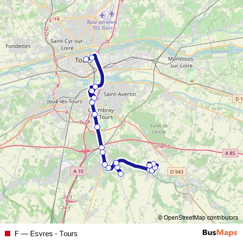 Bus F - Esvres - Tours in Tours: Stops & Timetable