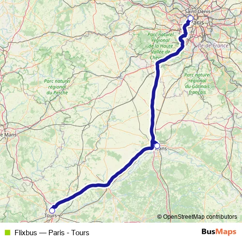 The first stop of the Flixbus bus route is Paris Pershing-Porte Maillot and the last stop is Tours Vaucanson Bus Station. Flixbus (Paris - Tours) is operational during on weekends.
