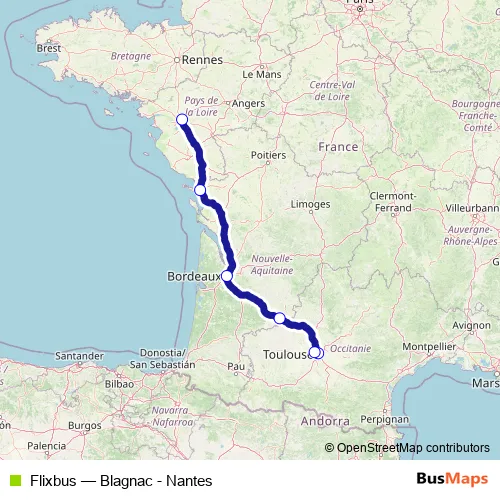 Click here to view the nearest Flixbus - Blagnac - Nantes bus stop.