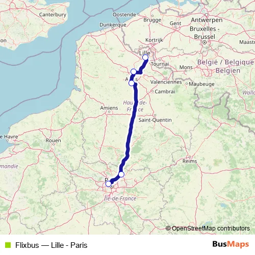 Click here to view the nearest Flixbus - Lille - Paris bus stop.