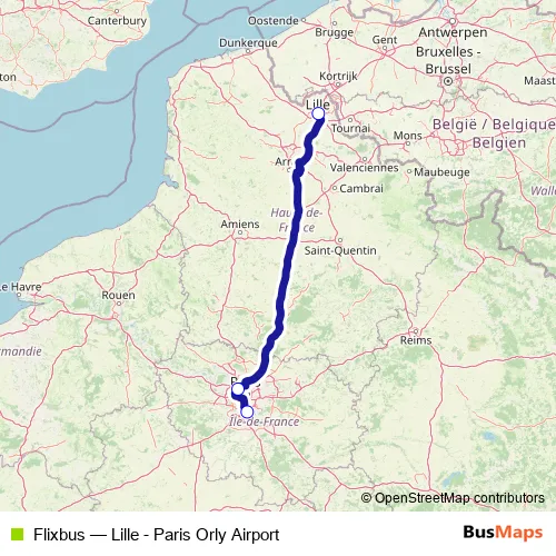 Click here to view the nearest Flixbus - Lille - Paris Orly Airport bus stop.