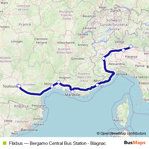 Bus Flixbus - Bergamo Central Bus Station - Blagnac: Full Schedule in Toulouse