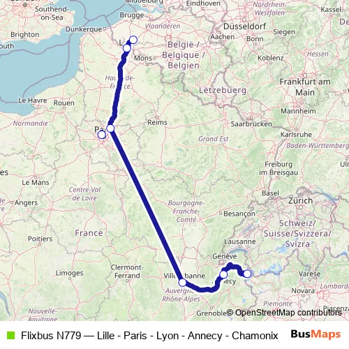 Click here to view the nearest Flixbus N779 - Lille - Paris - Lyon - Annecy - Chamonix bus stop.