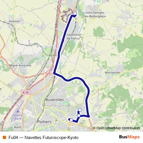Bus Fu04 - Navettes Futuroscope-Kyoto: Full Schedule in Poitiers
