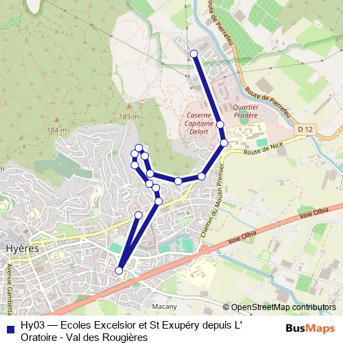 Bus Hy03 - Ecoles Excelsior et St Exupéry depuis L'Oratoire - Val des Rougières in Hyeres: Stops & Timetable