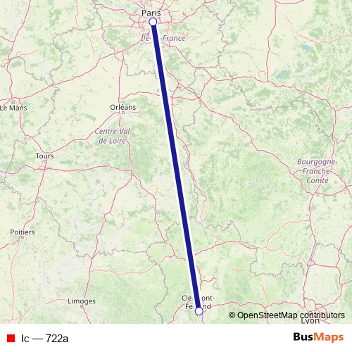 The first stop of the Ic rail route is Clermont-Ferrand and the last stop is Paris-Bercy. Ic (722a) is operational during on weekdays.