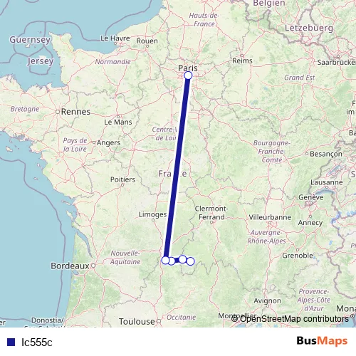 The first stop of the Ic555c rail route is Aurillac and the last stop is Paris-Austerlitz. Ic555c is operational during everyday.