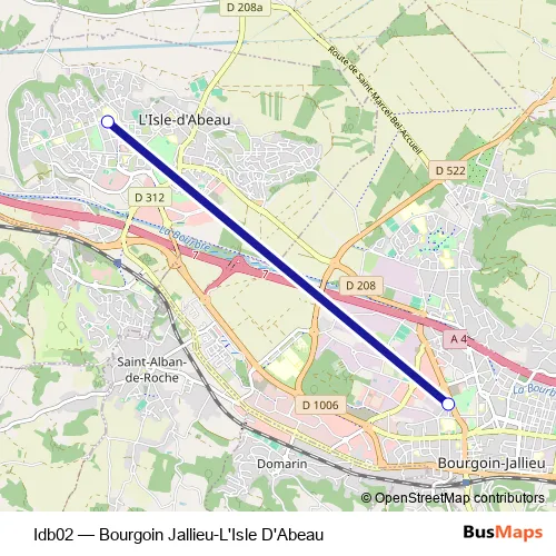 The first stop of the Idb02 bus route is Lycée Delorme and the last stop is Barbusse Gare Routière. Idb02 (Bourgoin Jallieu-L'Isle D'Abeau) is operational during on weekdays.