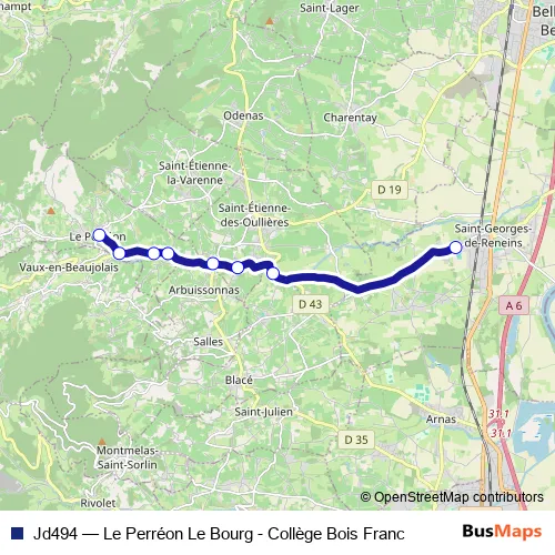 The first stop of the Jd494 bus route is Le Perréon Le Bourg and the last stop is Collège Bois Franc. Jd494 (Le Perréon Le Bourg - Collège Bois Franc) is operational during on weekdays.