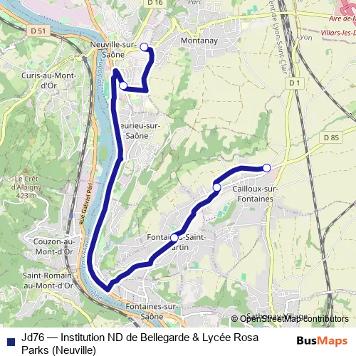 Services on the Jd76 - Institution ND de Bellegarde & Lycée Rosa Parks (Neuville) bus stop at 07:50 on Monday, Tuesday, Wednesday, Thursday, Friday.
