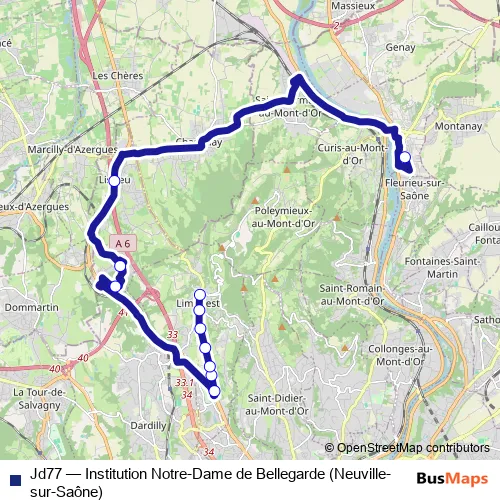 Bus Jd77 - Institution Notre-Dame de Bellegarde (Neuville-sur-Saône) Schedule in Lyon