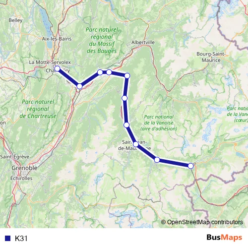 Chambéry-Challes-les-Eaux. K31 is operational during on weekdays.