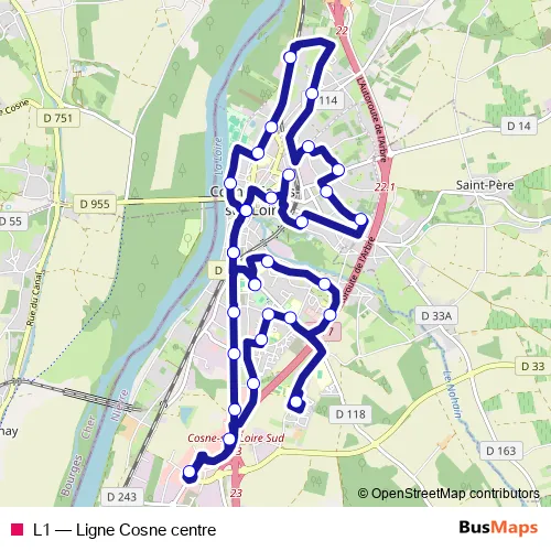 See why over 2 million users trust and consider busmaps.com as the best public transport website. busmaps gives you Cosne-Cours-sur-Loire Buses suggested routes, real-time bus tracker, line route maps in Cosne-Cours-sur-Loire, and helps to find the closest L1 bus stops near you. No internet available? Download an offline PDF map and bus schedule for the L1 bus to take on your trip.