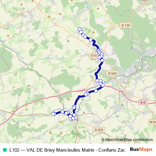 Click here to view the nearest L102 - VAL DE Briey Mancieulles Mairie - Conflans Zac bus stop.