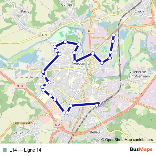 See why over 2 million users trust and consider busmaps.com as the best public transport website. busmaps gives you Soissons Buses suggested routes, real-time bus tracker, line route maps in Soissons, and helps to find the closest L14 bus stops near you. No internet available? Download an offline PDF map and bus schedule for the L14 bus to take on your trip.