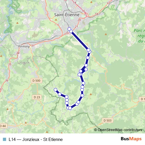 See why over 2 million users trust and consider busmaps.com as the best public transport website. busmaps gives you Saint-Etienne Buses suggested routes, real-time bus tracker, line route maps in Saint-Etienne, and helps to find the closest L14 bus stops near you. No internet available? Download an offline PDF map and bus schedule for the L14 bus to take on your trip.