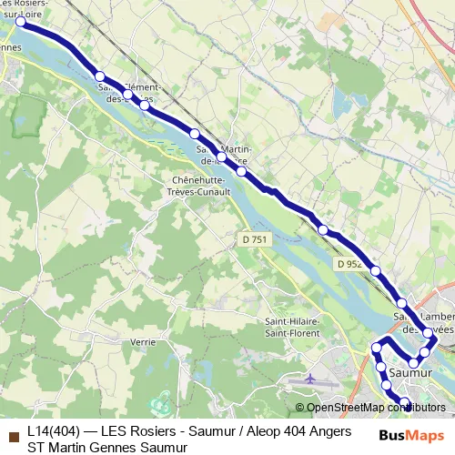 Click here to view the nearest L14(404) - LES Rosiers - Saumur / Aleop 404 Angers ST Martin Gennes Saumur bus stop.