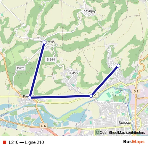See why over 2 million users trust and consider busmaps.com as the best public transport website. busmaps gives you Soissons Buses suggested routes, real-time bus tracker, line route maps in Soissons, and helps to find the closest L210 bus stops near you. No internet available? Download an offline PDF map and bus schedule for the L210 bus to take on your trip.