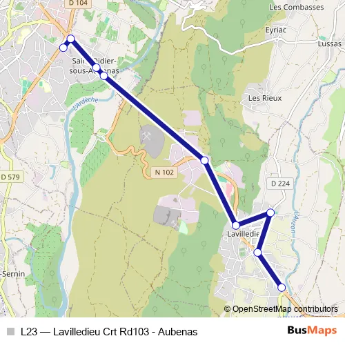 Click here to view the nearest L23 - Lavilledieu Crt Rd103 - Aubenas bus stop.