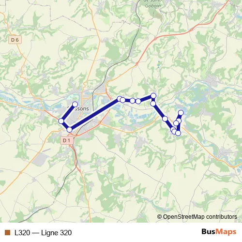 The first stop of the L320 bus route is Soissons-Jean Davesne and the last stop is Ciry Salsogne-LE Champ Part. L320 (Ligne 320) is operational during everyday.