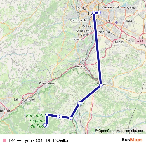 Click here to view the nearest L44 - Lyon - COL DE L'Oeillon bus stop.