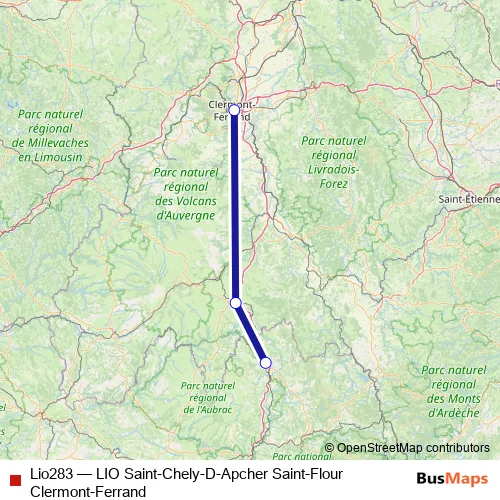 Click here to view the nearest Lio283 - LIO Saint-Chely-D-Apcher Saint-Flour Clermont-Ferrand bus stop.