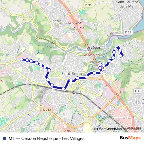 See why over 2 million users trust and consider busmaps.com as the best public transport website. busmaps gives you Saint-Brieuc Buses suggested routes, real-time bus tracker, line route maps in Saint-Brieuc, and helps to find the closest M1 bus stops near you. No internet available? Download an offline PDF map and bus schedule for the M1 bus to take on your trip.