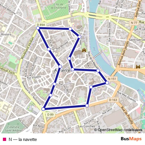 See why over 2 million users trust and consider busmaps.com as the best public transport website. busmaps gives you Auxerre Buses suggested routes, real-time bus tracker, line route maps in Auxerre, and helps to find the closest N bus stops near you. No internet available? Download an offline PDF map and bus schedule for the N bus to take on your trip.