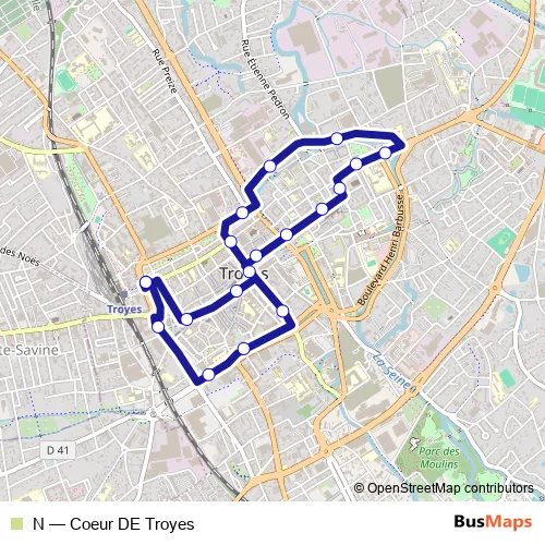 Bus N - Coeur DE Troyes: Full Schedule in Troyes
