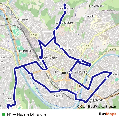 See why over 2 million users trust and consider busmaps.com as the best public transport website. busmaps gives you Perigueux Buses suggested routes, real-time bus tracker, line route maps in Perigueux, and helps to find the closest N1 bus stops near you. No internet available? Download an offline PDF map and bus schedule for the N1 bus to take on your trip.