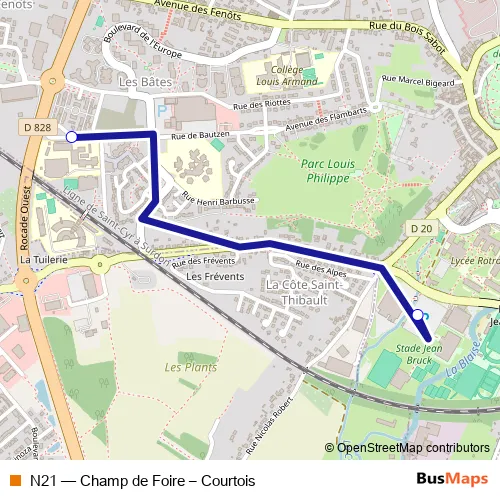 Click here to view the nearest N21 - Champ de Foire – Courtois bus stop.