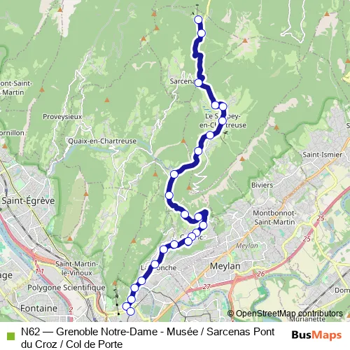 Click here to view the nearest N62 - Grenoble Notre-Dame - Musée / Sarcenas Pont du Croz / Col de Porte bus stop.