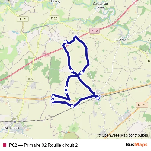Click here to view the nearest P02 - Primaire 02 Rouillé circuit 2 bus stop.
