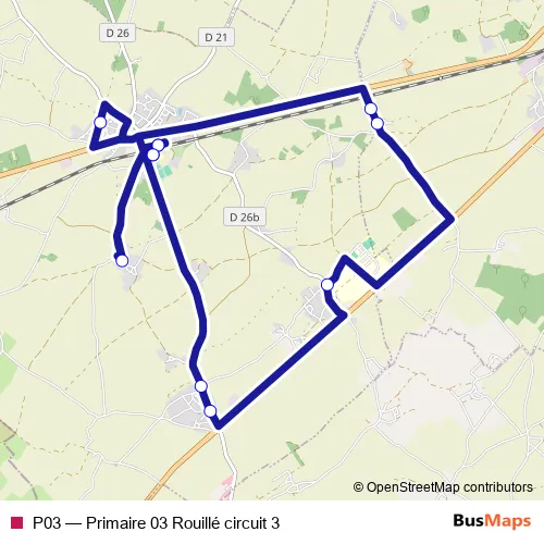 Click here to view the nearest P03 - Primaire 03 Rouillé circuit 3 bus stop.