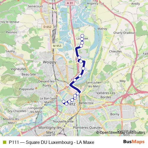 See why over 2 million users trust and consider busmaps.com as the best public transport website. busmaps gives you Metz Buses suggested routes, real-time bus tracker, line route maps in Metz, and helps to find the closest P111 bus stops near you. No internet available? Download an offline PDF map and bus schedule for the P111 bus to take on your trip.