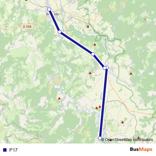The first stop of the P17 bus route is Langeac and the last stop is Brioude. P17 is operational during on weekdays.