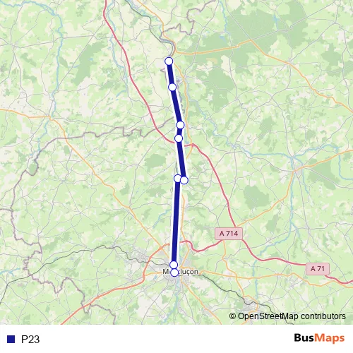 The first stop of the P23 bus route is Montluçon and the last stop is Urcay Hôtel du Lyon d'Or. P23 is operational during everyday.