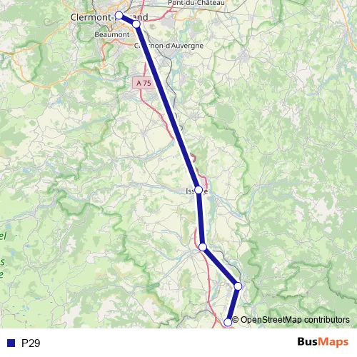 The first stop of the P29 bus route is Clermont-Ferrand and the last stop is Arvant. P29 is operational during everyday.