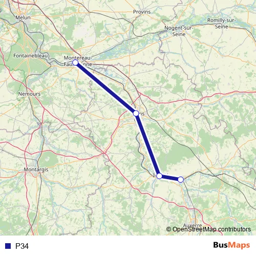 The first stop of the P34 bus route is Laroche-Migennes and the last stop is Montereau. P34 is operational during on weekends.