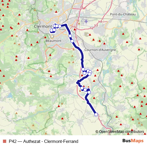 Bus P42 - Authezat - Clermont-Ferrand in Clermont-Ferrand: Stops & Timetable