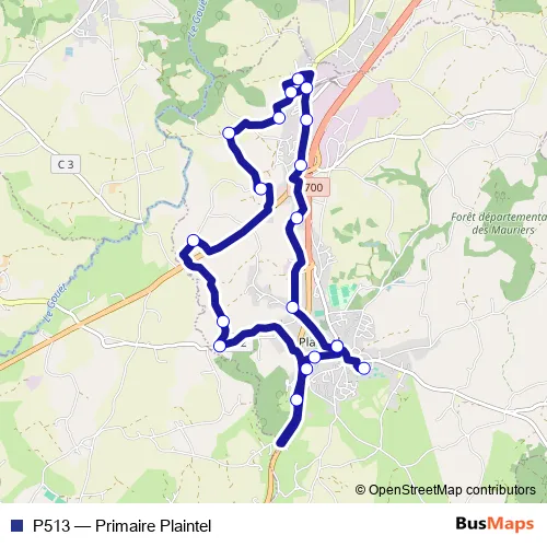 The first stop of the P513 bus route is Ecole St-Joseph and the last stop is Ecole Publique. P513 (Primaire Plaintel) is operational during everyday.