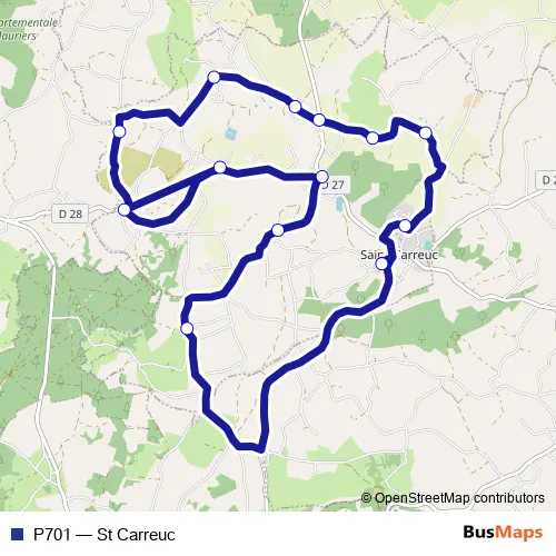 The first stop of the P701 bus route is St-Carreuc Ecole and the last stop is St-Carreuc Ecole. P701 (St Carreuc) is operational during everyday.